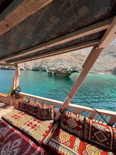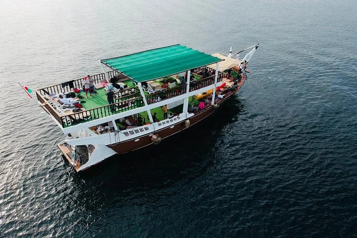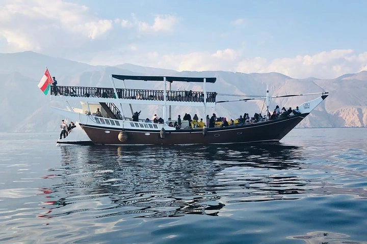 اهرب من دبي في مغامرة ليوم كامل إلى مسندم، عمان، التي تُعرف غالبًا بـ "النرويج العربية" بسبب ساحلها الدراماتيكي الشبيه بالفيورد. استرخِ خلال الانتقال ذو المناظر الخلابة، ثم أبحر في المياه الفيروزية على متن قارب الداو التقليدي مع مقاعد وسجاد للراحة.