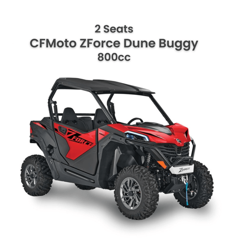 Sie müssen ein Haftungsformular unterschreiben, in dem Sie die Risiken dieser Aktivität anerkennen – Sie sind für Ihre eigene Sicherheit und die Ihrer Mitfahrer verantwortlich und dafür, dass der Buggy oder das Quad nicht beschädigt wird. Jegliche Schäden an den Fahrzeugen werden begutachtet und die Reparaturkosten werden Ihnen in Rechnung gestellt.