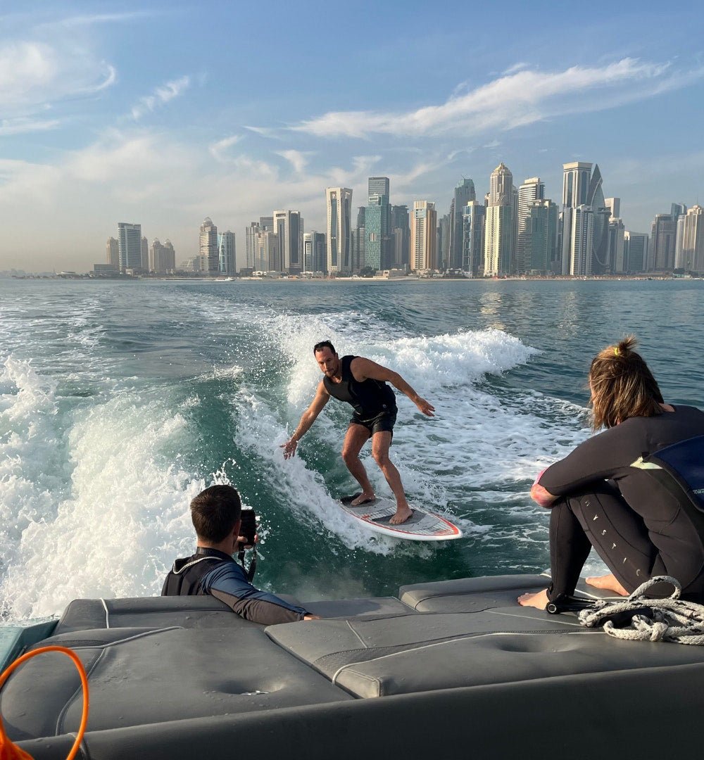 Doha: Surf'N Grill: Wakesurf-Session bei Sonnenuntergang inklusive BBQ auf dem Boot
