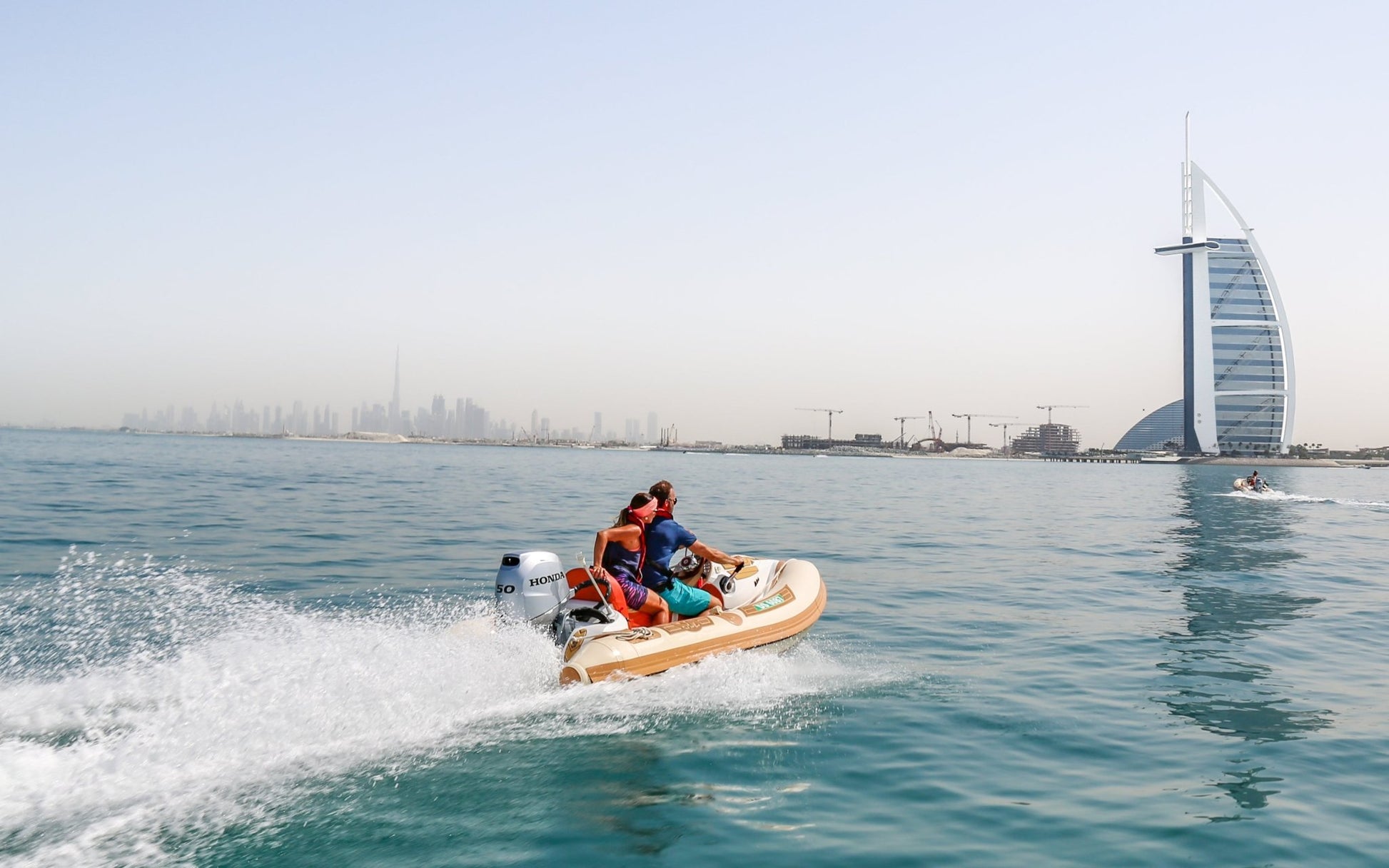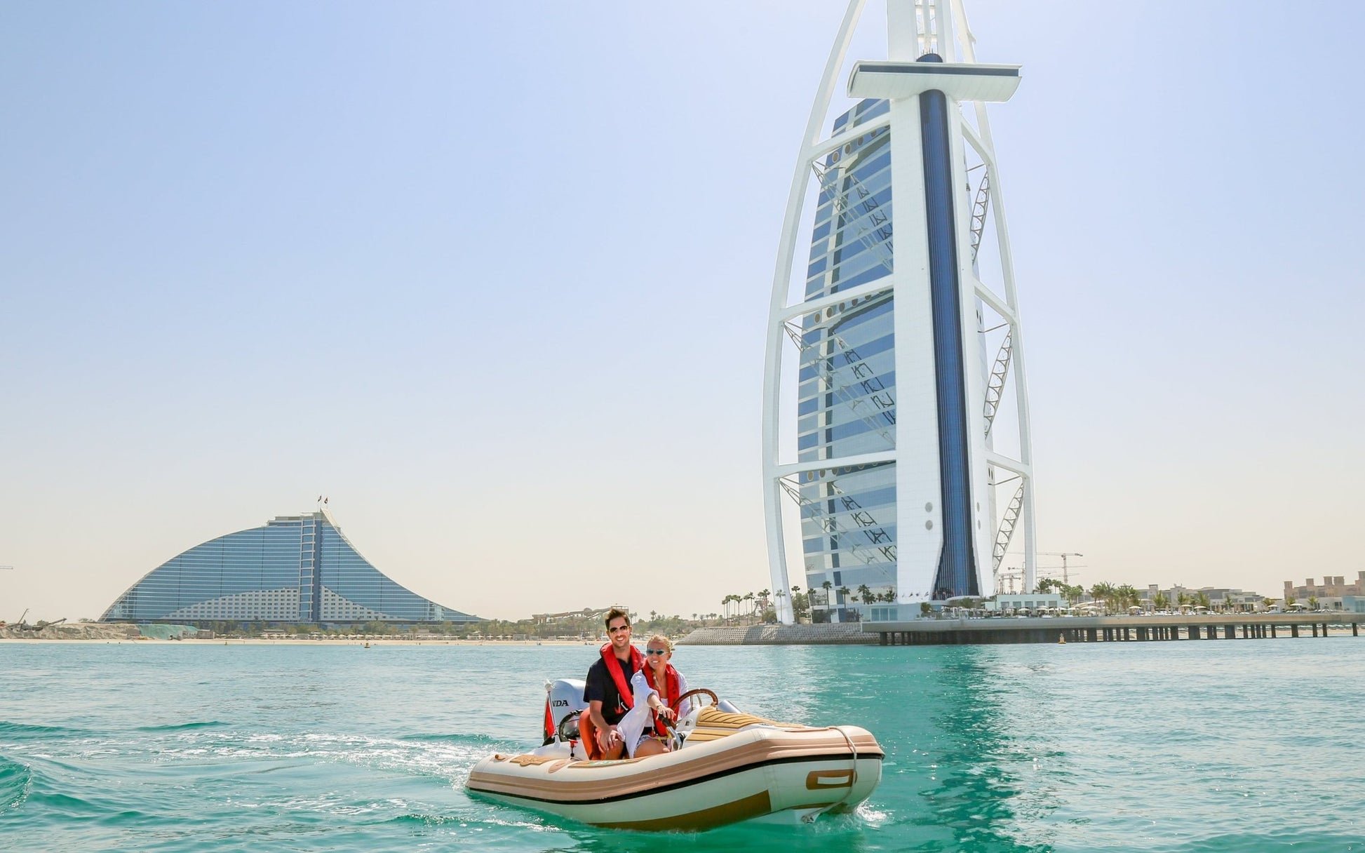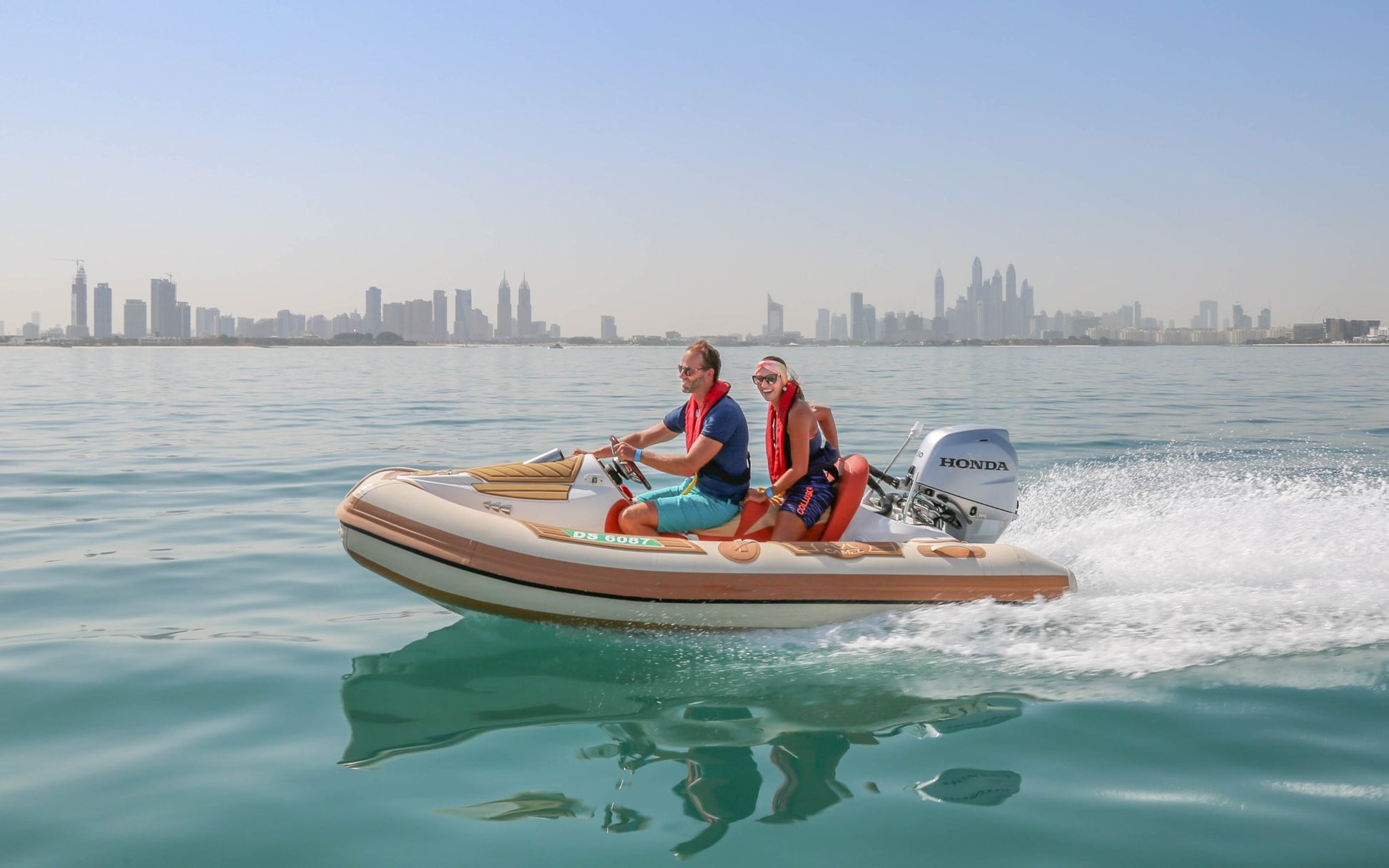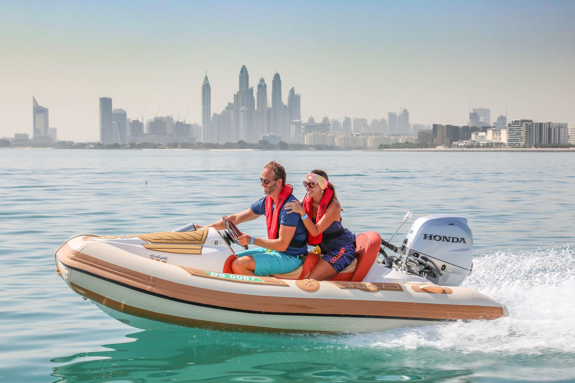 - Experimente la emoción de controlar su propia lancha motora en las impresionantes aguas de Dubái.