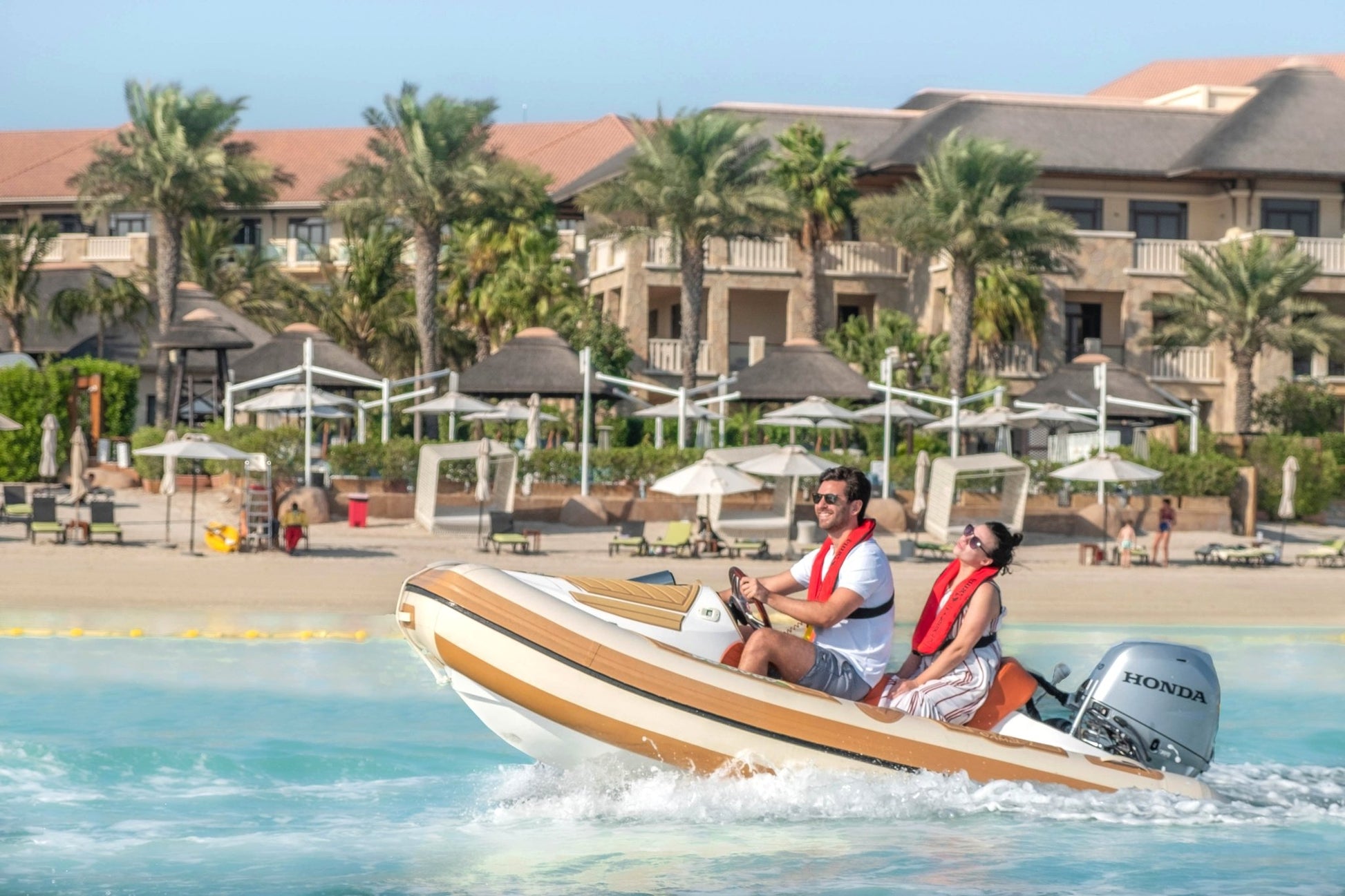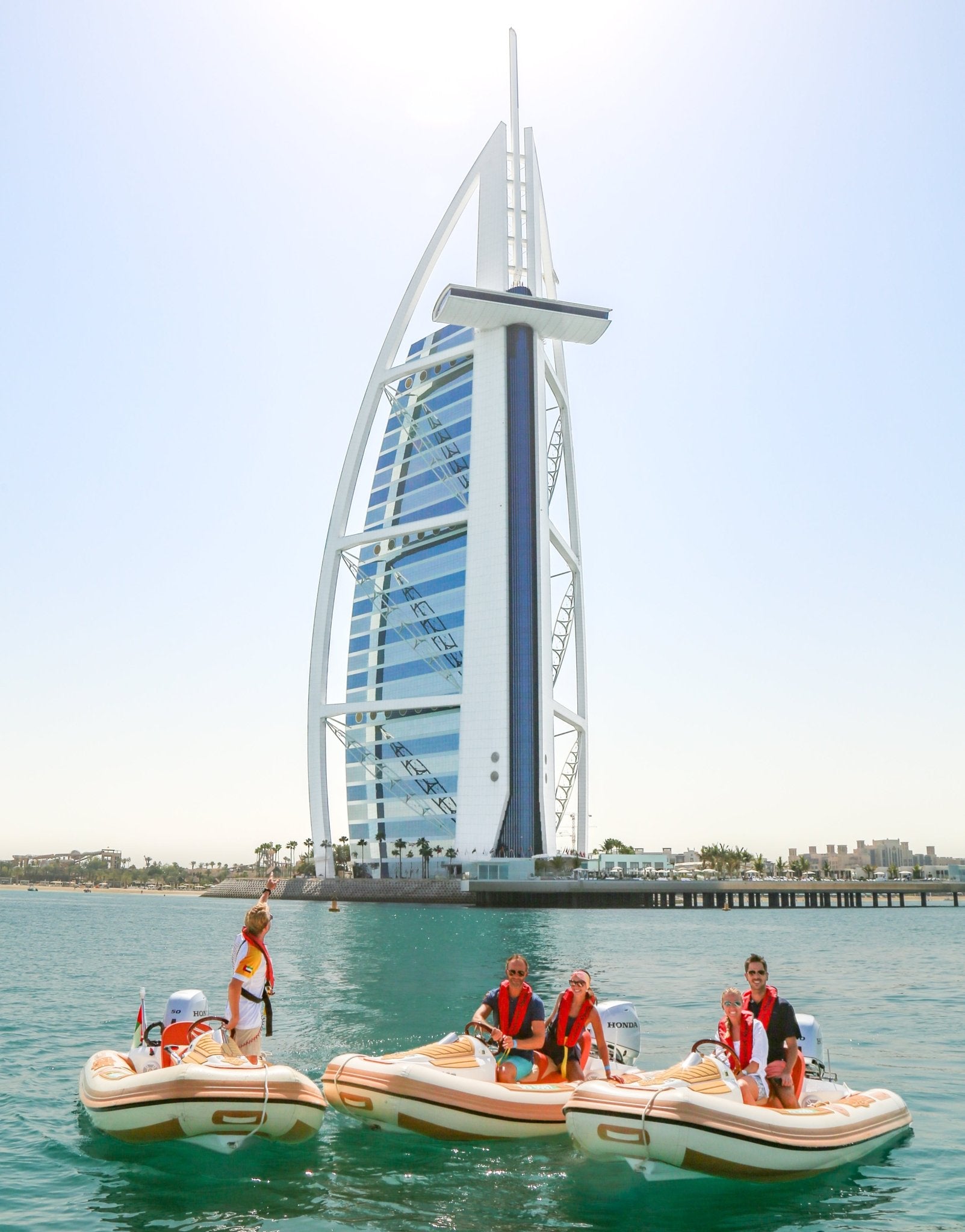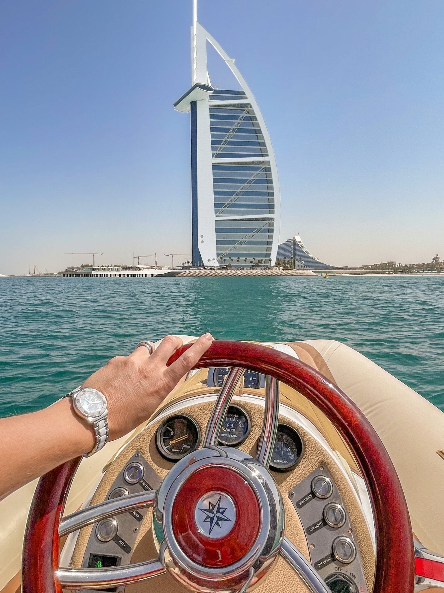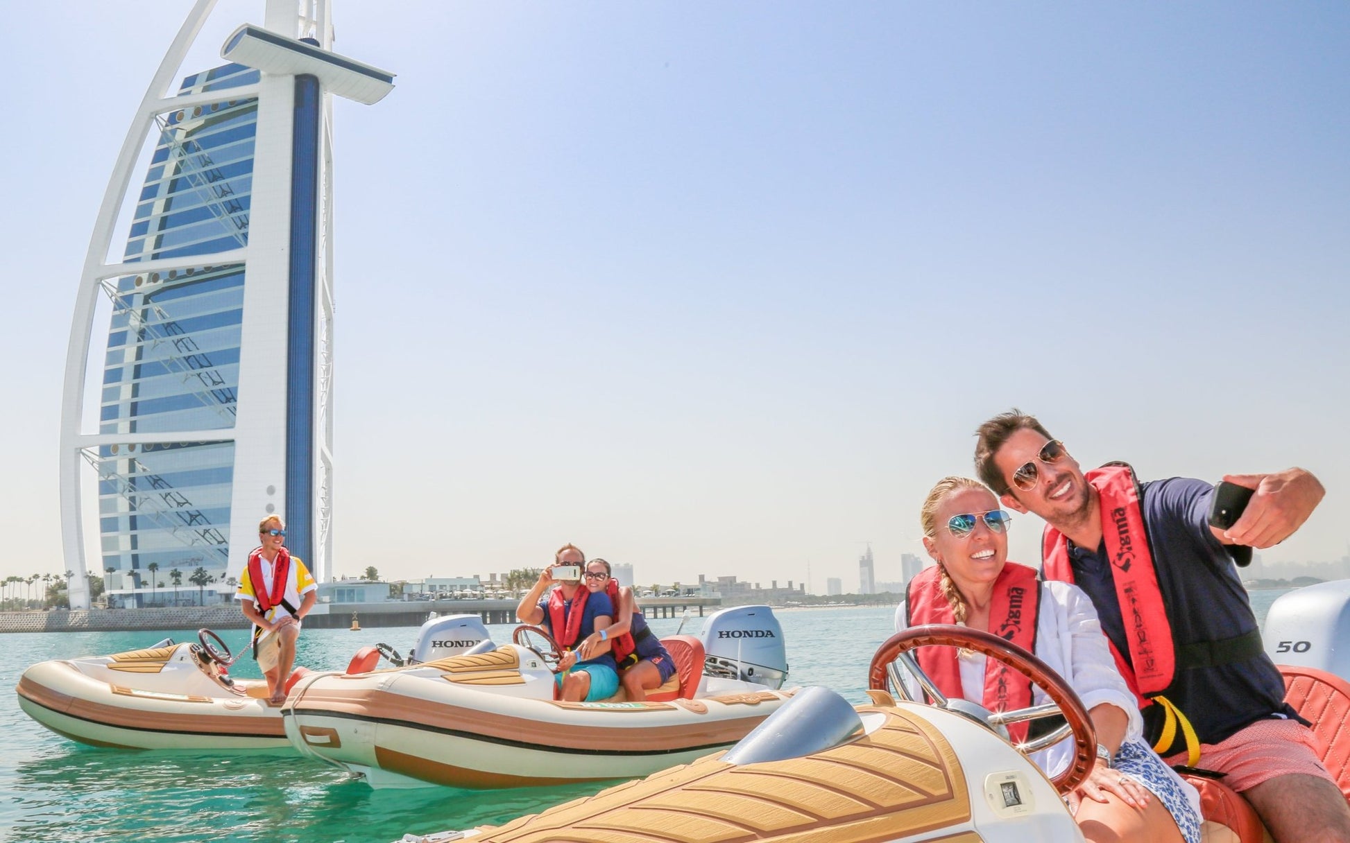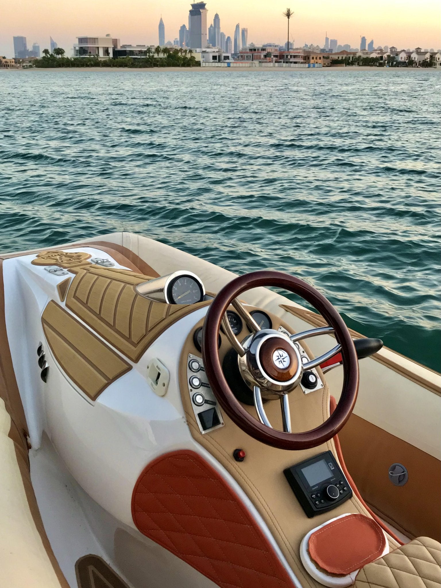 - Experimente la emoción de controlar su propia lancha motora en las impresionantes aguas de Dubái.