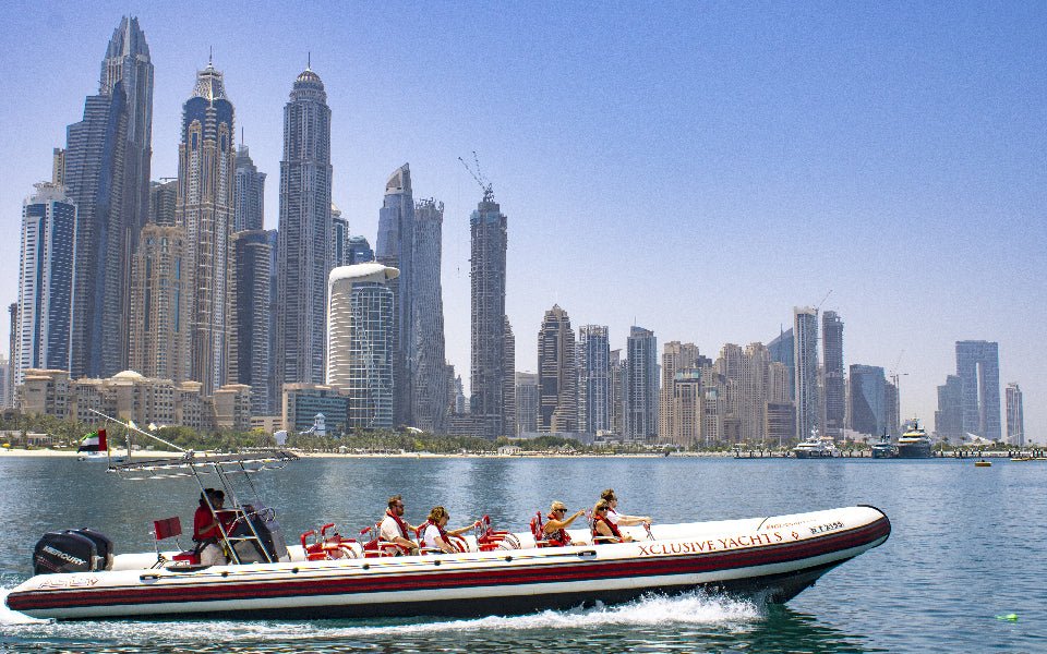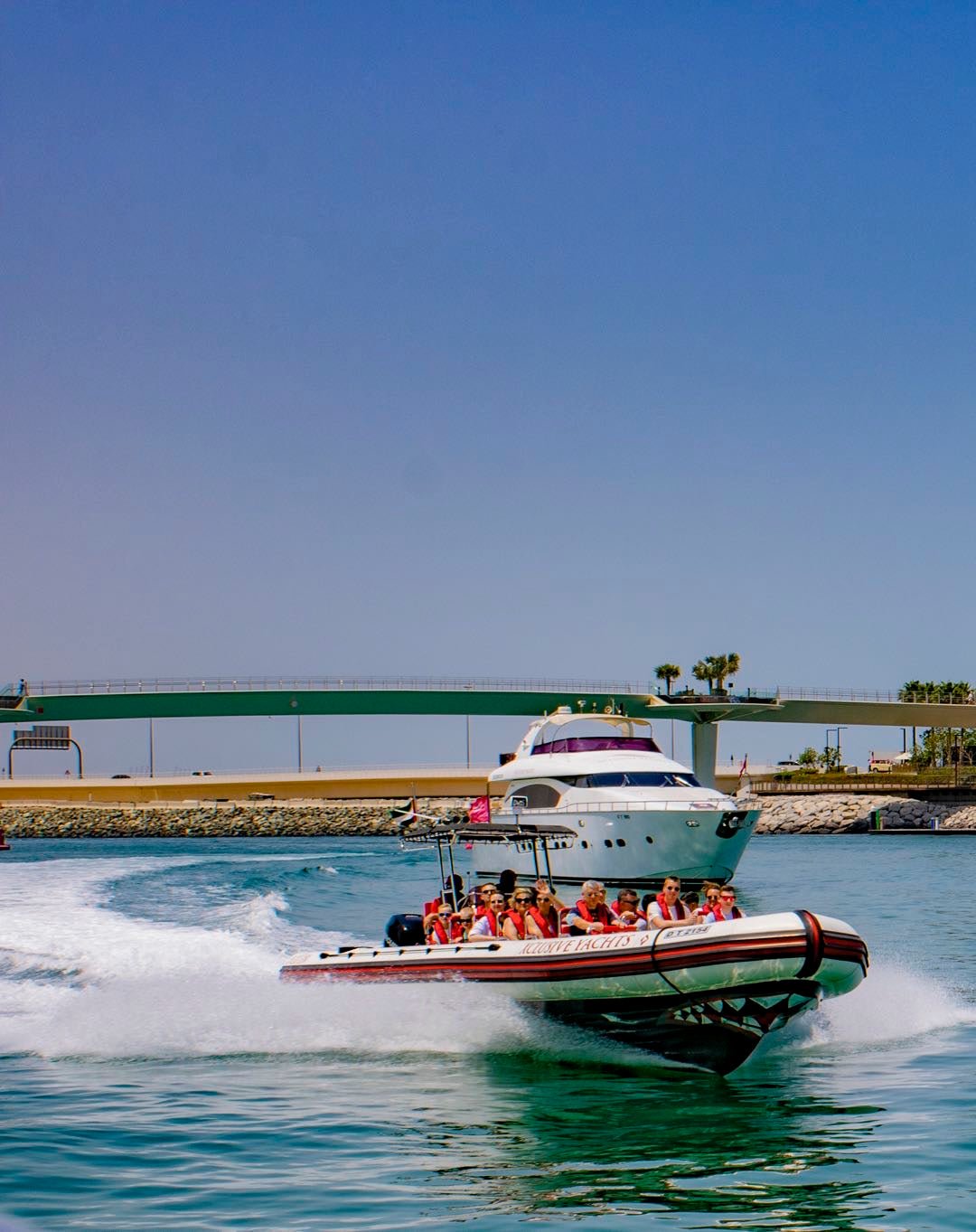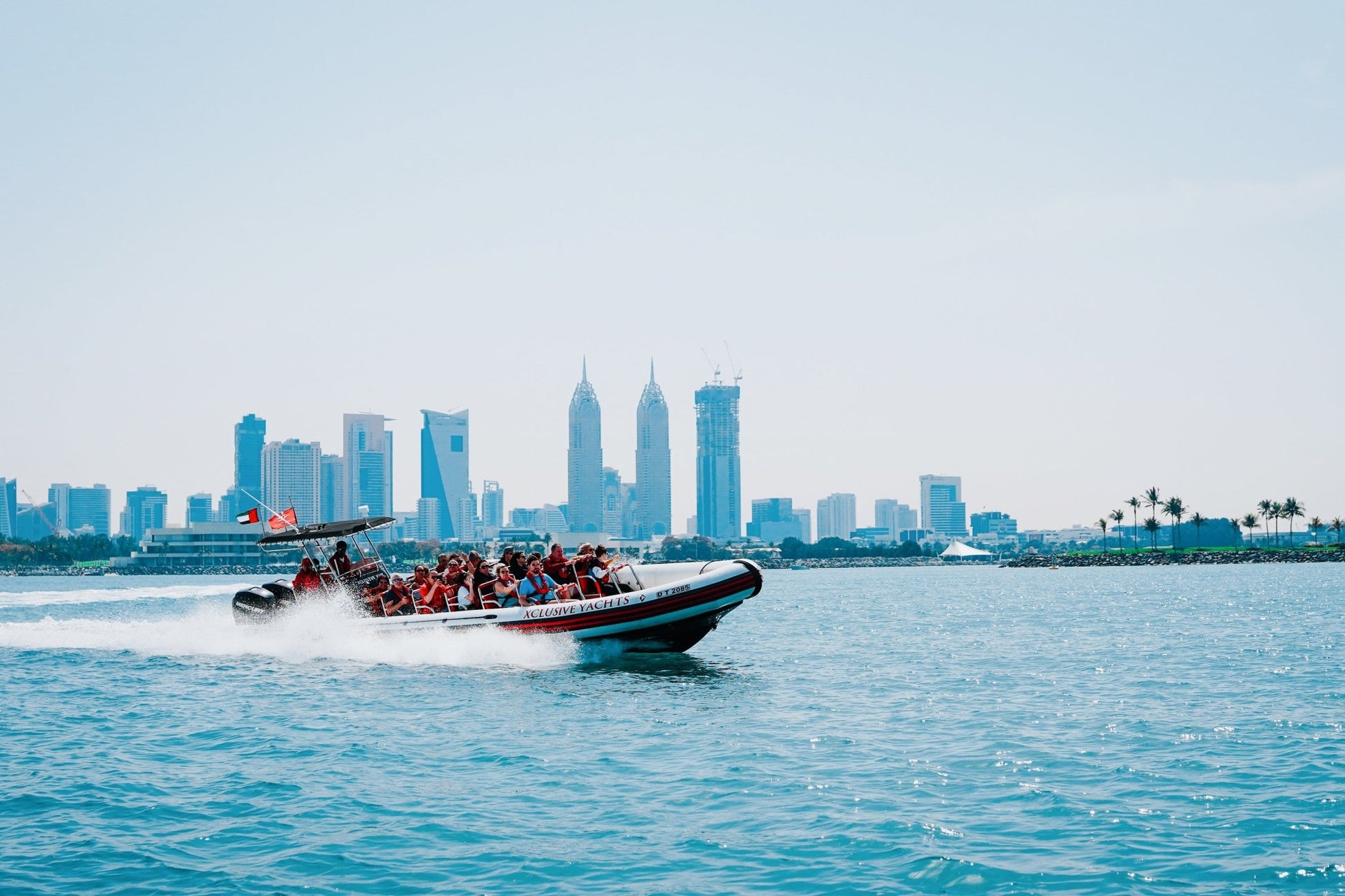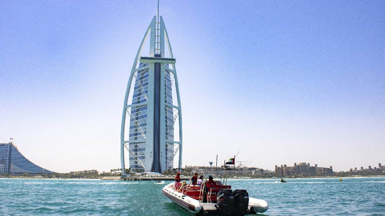 Découvrez Dubaï depuis l'eau lors d'une excursion en hors-bord pleine d'adrénaline. Découvrez les principaux sites de Dubaï d'une manière unique et amusante en traversant les eaux de la marina à la plage. Ce voyage aller-retour palpitant part de la célèbre Marina de Dubaï. L'hôte dispose d'un bureau sur la Marina où un tapis rouge vous attend pour vous accueillir. Une fois que vous vous êtes enregistré, votre guide vous fera un briefing de sécurité, alors veuillez arriver à l'heure. Embarquez pour une visite complète des sites qui vous fera naviguer à travers la marina jusqu'à Jumeirah Beach. From là, cette visite inoubliable est pleine de superbes vues et de faits amusants sur tous les hôtels de la côte, les plages, et bien sûr les principaux sites de Dubaï, y compris :