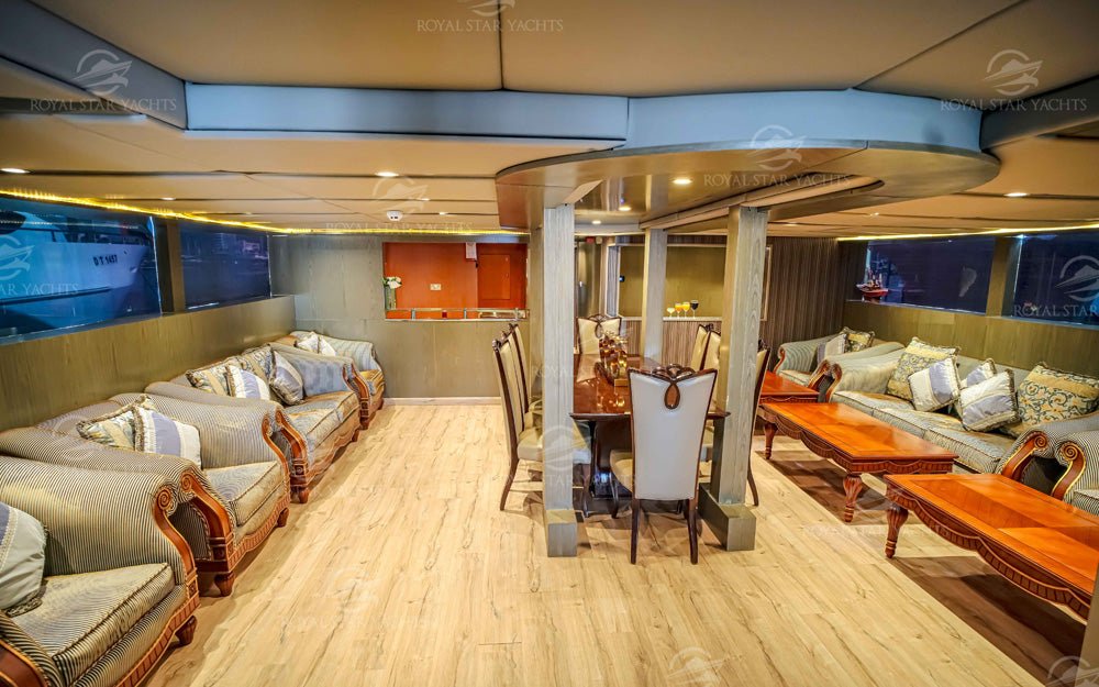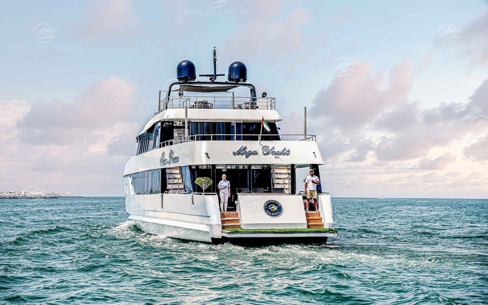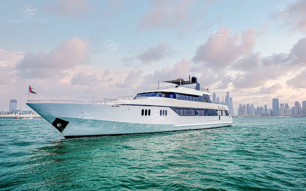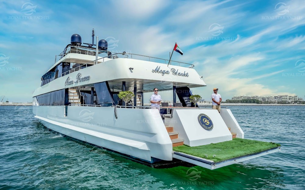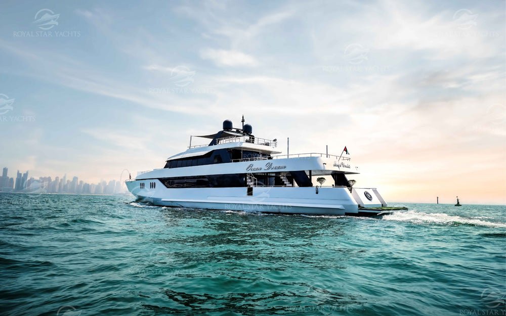 ドバイでの143フィートのオーシャンドリーム(プレミアム)ヨットツアーで、スリリングな冒険に出かけましょう。アラビア湾の青い海で、贅沢と興奮が出会います。洗練されたスタイリッシュなヨットに乗って、波の上を滑るように進むとき、風が髪をなびかせる感覚を味わってください。