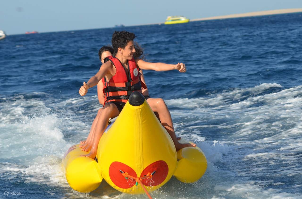 天候と海の状況が許せば、スピードボートの後ろで楽しいバナナボートライドをお楽しみください。