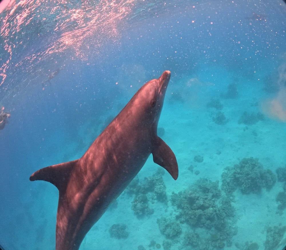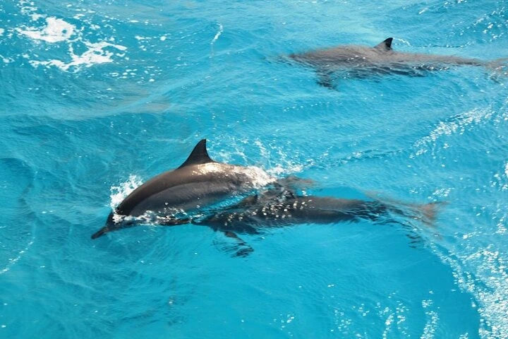 イルカが頻繁に見られるエリアでシュノーケリングを楽しみましょう。イルカは野生動物であるため、目撃は一般的ですが保証されていません。