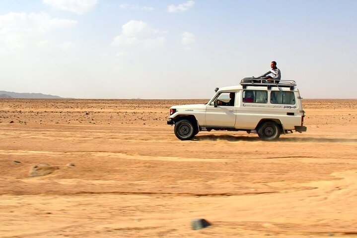 シャルム・エル・シェイクからサラマ・カラード・キャニオンとダハブへのエキサイティングな砂漠と海の冒険に出発しましょう。ジープでシナイの劇的な風景を駆け抜け、キャニオンのそびえ立つ砂岩の壁の間を歩き、クリスタルクリアなスリー・プールズの水辺でリラックスします。