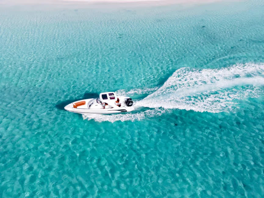 高速ボートに乗り、紅海を渡ってパラダイス島へのスリリングな旅をお楽しみください。