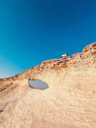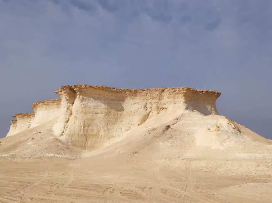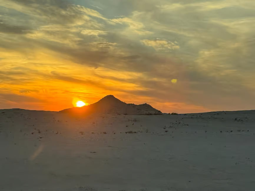 EAST-WEST / WEST-EAST av Richard SerraDenne fantastiske skulpturen i Brouq naturreservat strekker seg over en kilometer, med fire tårnhøye stålplater, hver over fjorten meter høy. Richard Serra studerte nøye topografien av landet for å sikre perfekt justering, og integrerte stykket sømløst i det store, øde ørkenlandskapet. Resultatet er et slående, moderne mesterverk som føles både tidløst og harmonisk med omgivelsene.35 minutter