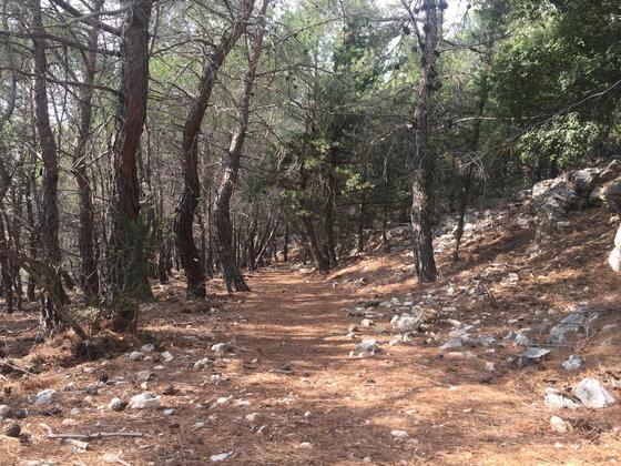 - Rozpocznij wędrówkę i zacznij od prostego szlaku pod drzewami.