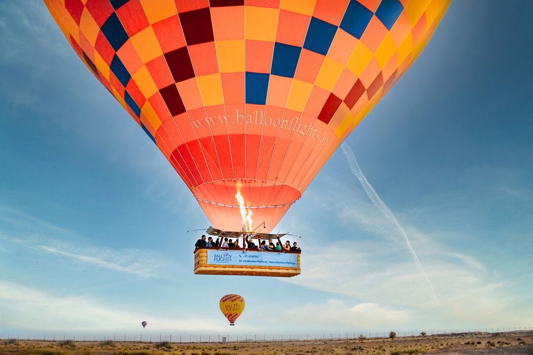 - Podziwiaj wschód słońca i zachwycaj się zapierającą dech w piersiach pustynią Dubaju oraz jej florą i fauną, unosząc się spokojnie w chmurach na wysokości ponad 4 000 stóp.