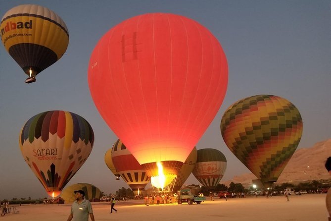 Zostaniesz odebrany z hotelu w Luksorze wcześnie rano przed wschodem słońca i przewieziony na Zachodni Brzeg Luksoru. Po przyjeździe spotkasz się z doświadczonym pilotem i otrzymasz instrukcje bezpieczeństwa, podczas gdy załoga przygotowuje Twój kolorowy balon. Przygotuj aparat, aby uchwycić widoki, gdy będziesz unosić się w powietrzu.