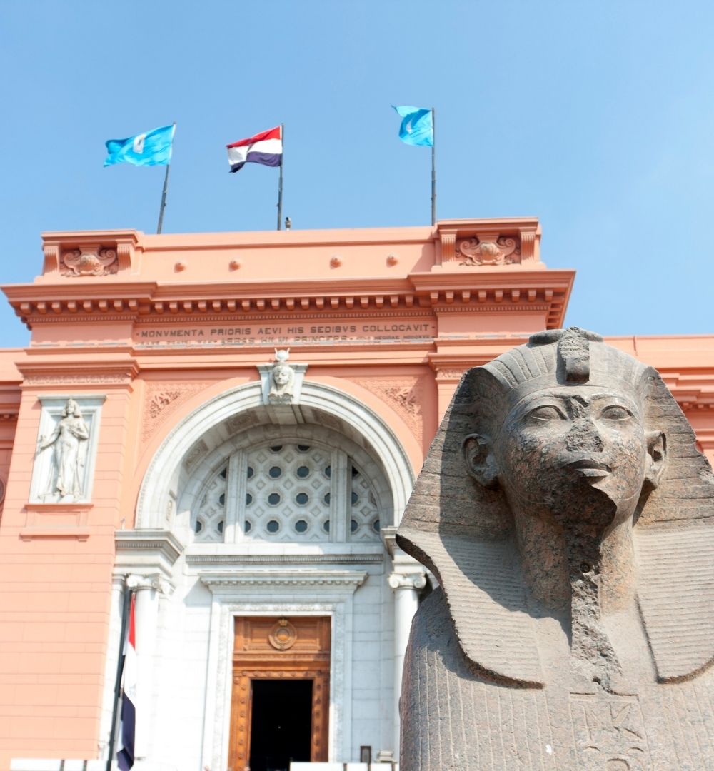 - Drive with visiting The Egyptian Museum in Tahrir square which was built in 1902, will be guided for tour where you will see the most important archaeological collections that were found in the tombs of the kings and the famous temples of ancient Egypt the museum now includes the largest archaeological collection in the world that expresses all stages of ancient Egyptian history.
