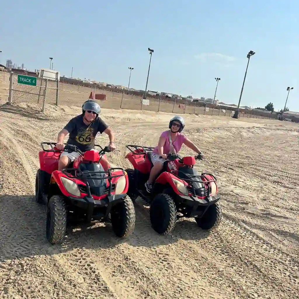 As per Qatar Law, you must be 18+ years old in order to drive the quad bike or dune buggy. For those <18 years old, they would need to sit behind an adult in a quad bike or next to an adult in the dune buggy.