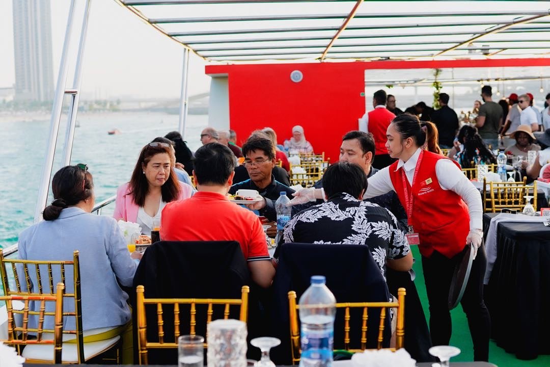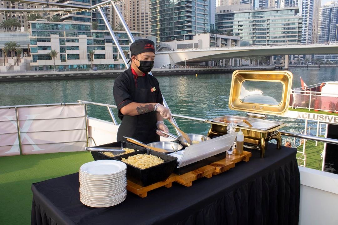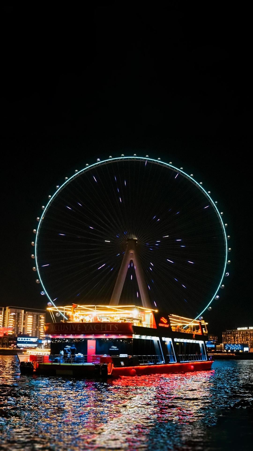 Climb aboard a plush, glass-enclosed boat, and enjoy a dinner cruise of Dubai Marina, Ain Wheel, and JBR with a yacht charter company that has been in operation for 15 years and serves over 1 million guests per year. Get the red carpet treatment throughout your experience. Enjoy a complimentary drink and wander around the boat’s two decks, including a glass-enclosed lower deck for optimum views, and an open-air upper deck to enjoy the breeze off the Persian Gulf. Dine from a delicious buffet of continental and oriental dishes, along with an excellent selection of juices and thirst quenchers. Relax to the sound of melodic music, designed to add a romantic touch to your evening. After dinner, retire to the outdoor terraces to make the most of the stunning views as you cruise back to the dock (estimated time of arrival 10:00 PM) at the end of the tour services.