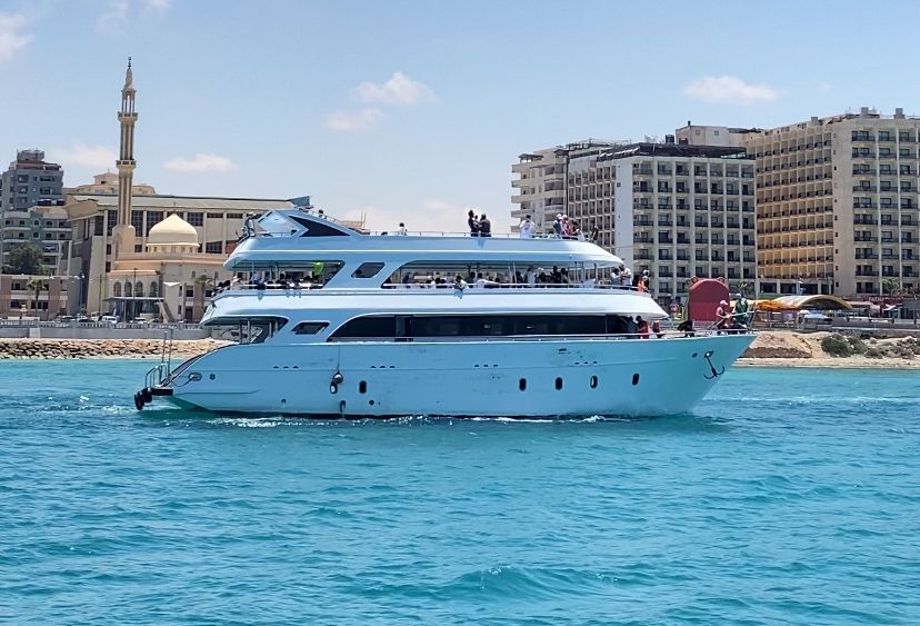 Experience the ultimate adventure on the pristine waters of Marsa Matrouh with our private yacht rental! With crystal clear, white sandy beaches and the Mediterranean ocean as your backdrop, this trip is a must for anyone seeking a thrilling and relaxing experience. Bring your family and friends on a journey to Nawras Island, where you can dive into shallow waters and swim in the warm sun. Don't miss out on this unforgettable opportunity!