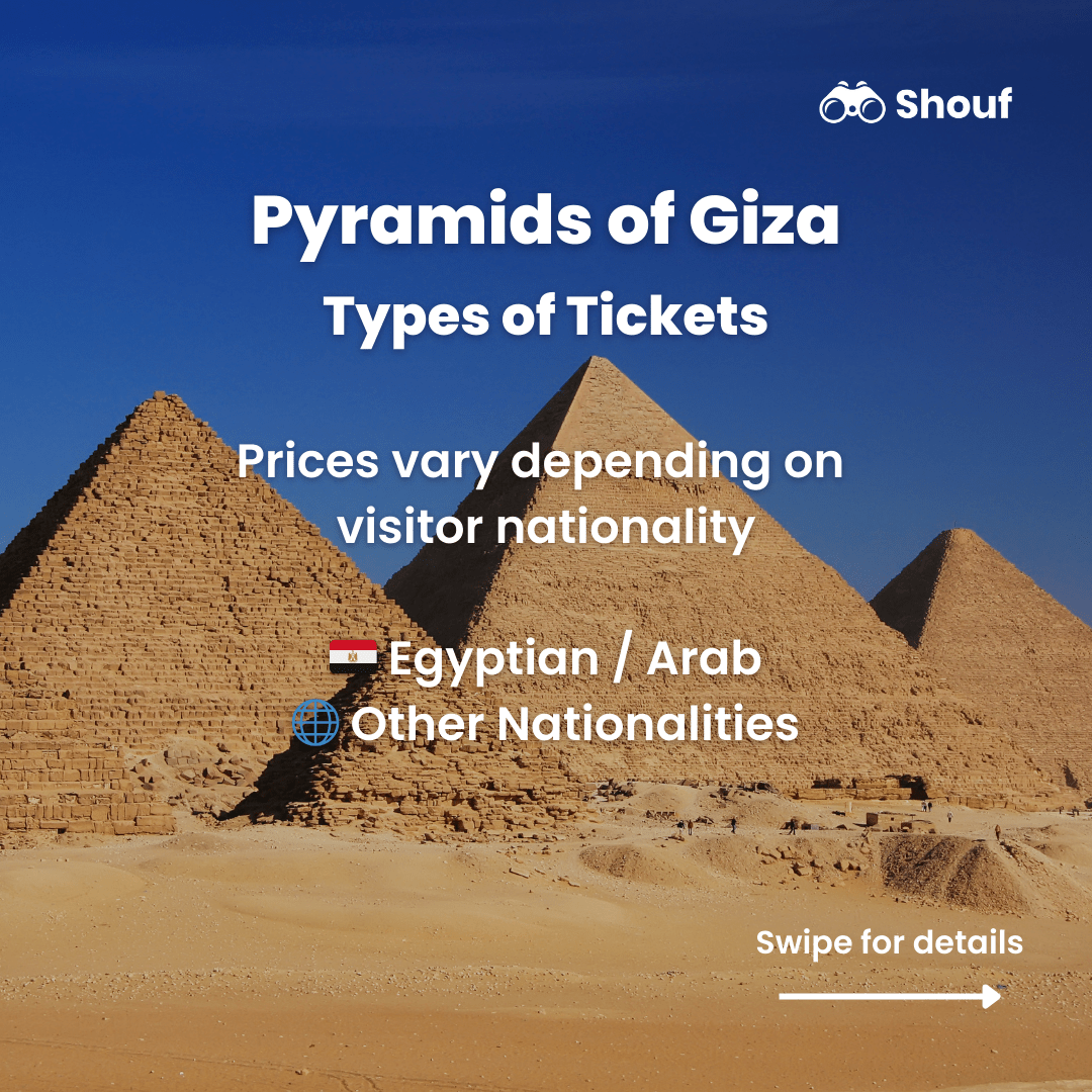 Ticket OptionsPrices vary depending on visitor nationality. Egyptian, Arab or Other Nationalities