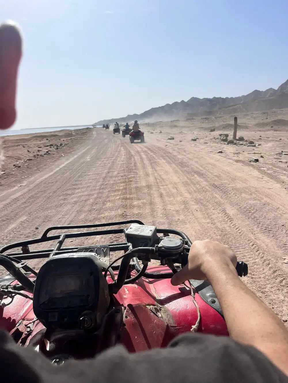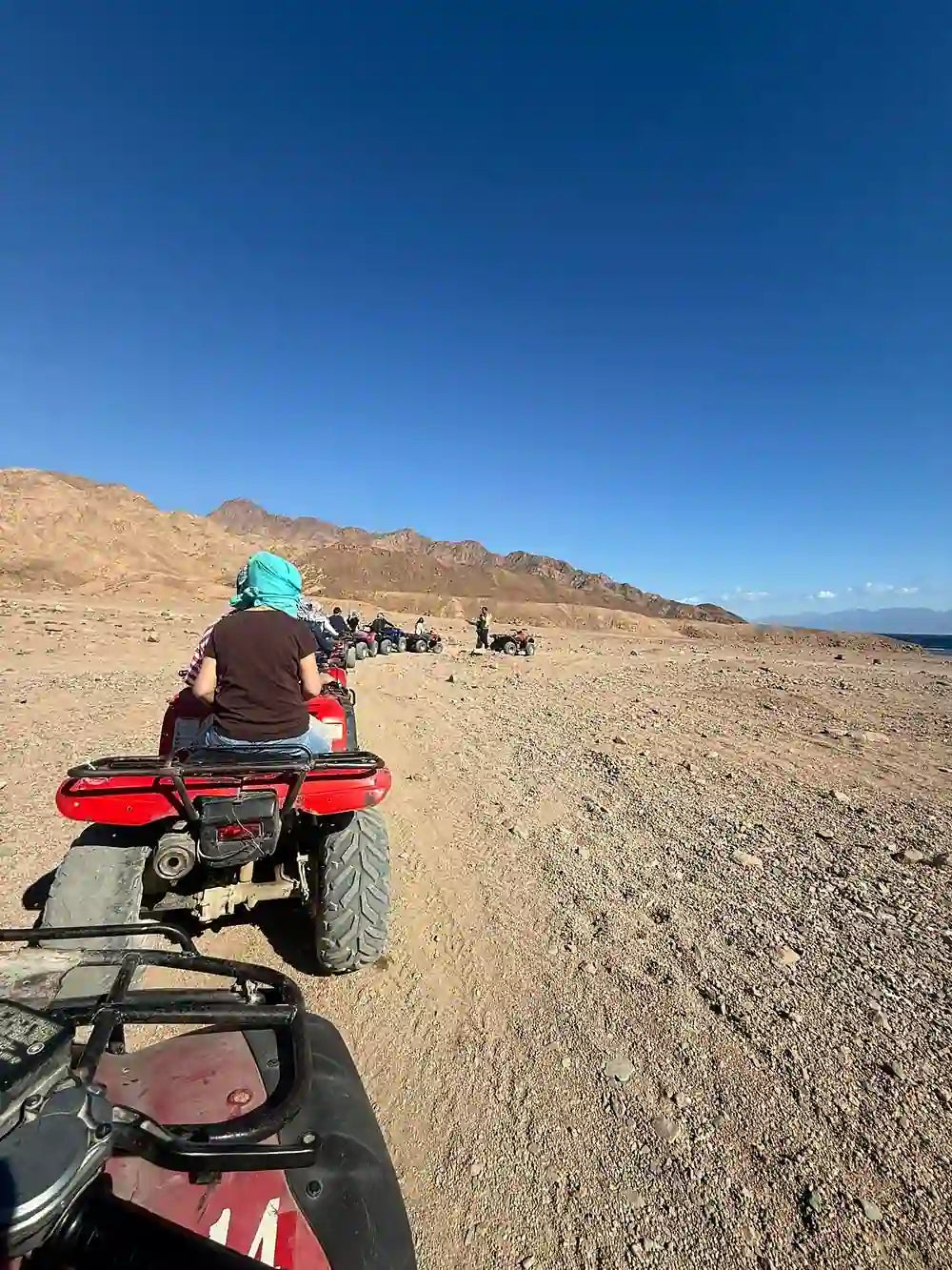 Se selecionado na reserva, aproveite um passeio de ATV pelas trilhas costeiras e montanhosas de Dahab, combinando vistas do mar com paisagens desérticas.
