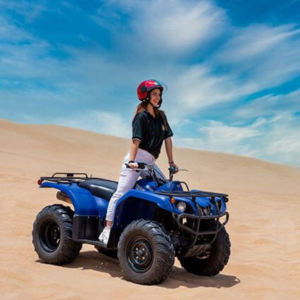 As per Qatar Law, you must be 18+ years old in order to drive the quad bike or dune buggy. For those <18 years old, they would need to sit behind an adult in a quad bike or next to an adult in the dune buggy.