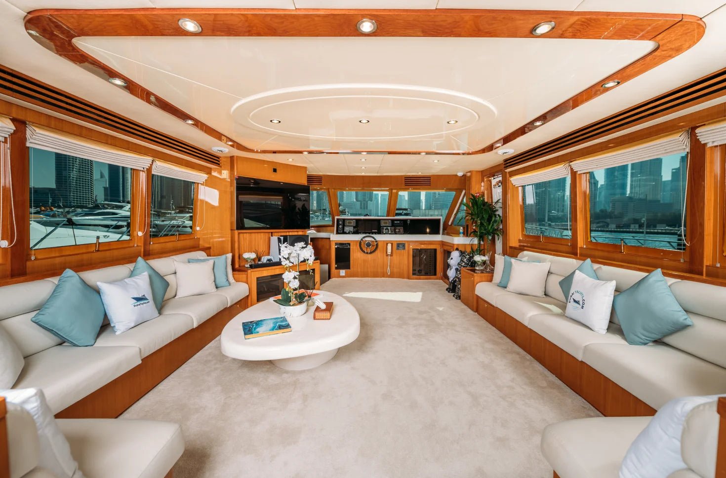 - Интерьер: Массивный салон, 3 каюты, 4 ванные комнаты, джакузи, кухня.