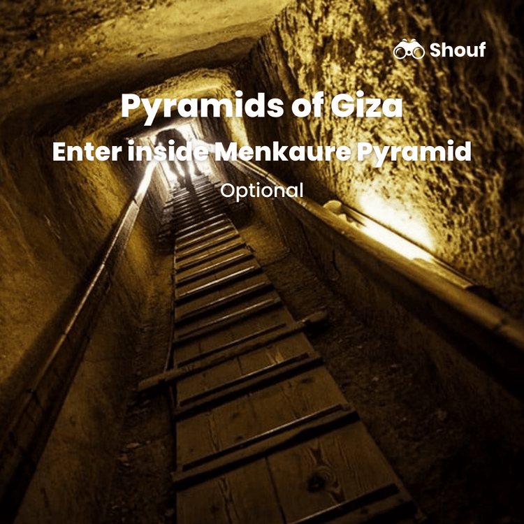 Дополнительные билеты: Дополнительные билеты требуются для входа внутрь каждой пирамиды. Это Великая пирамида Хеопса, пирамида Хефрена и пирамида Менкаура.