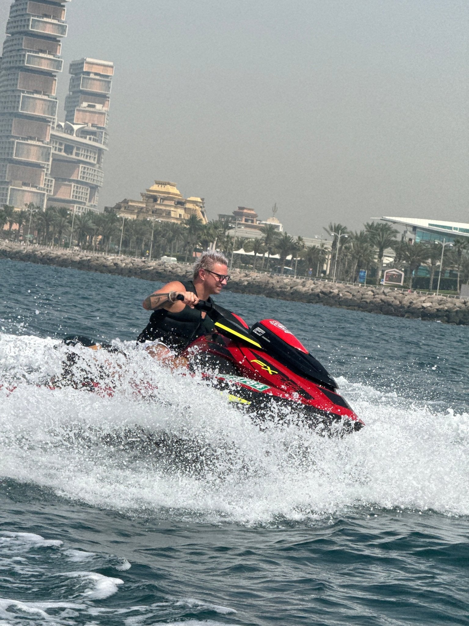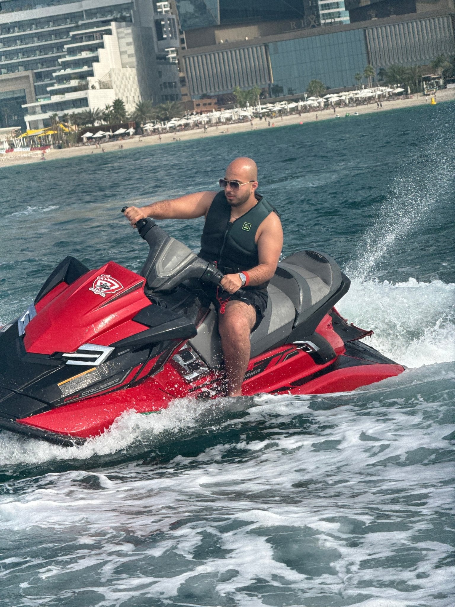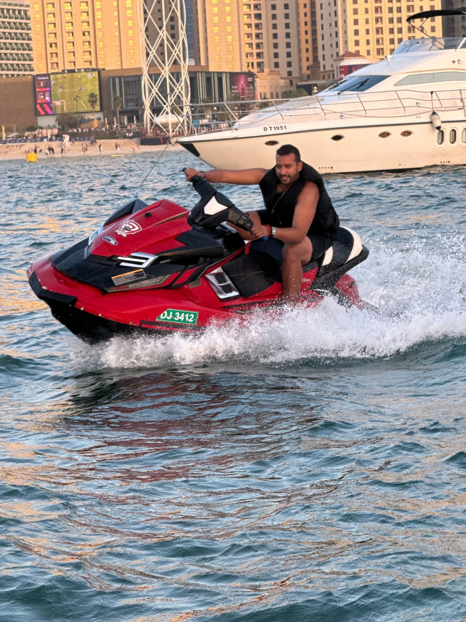 Dubai'de heyecan verici bir Jet Ski yolculuğu mu arıyorsunuz? Unutulmaz bir macera için JBR'de bize katılın! İster profesyonel olun, ister ilk kez deneyiyor olun, eğitmenlerimiz bunu eğlenceli hale getiriyor. Dubai'nin en gözde noktalarının (Dubai Eye, Atlantis the Palm) nefes kesen manzarasını izleyin ve heyecanın tadını çıkarın!