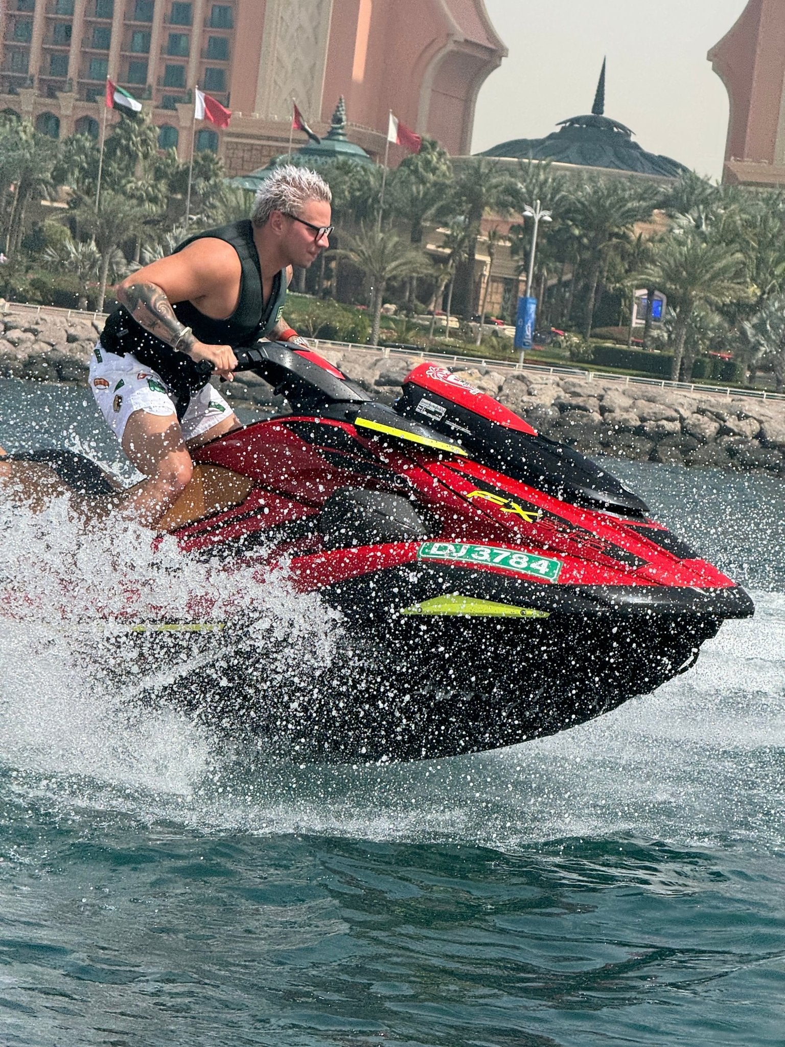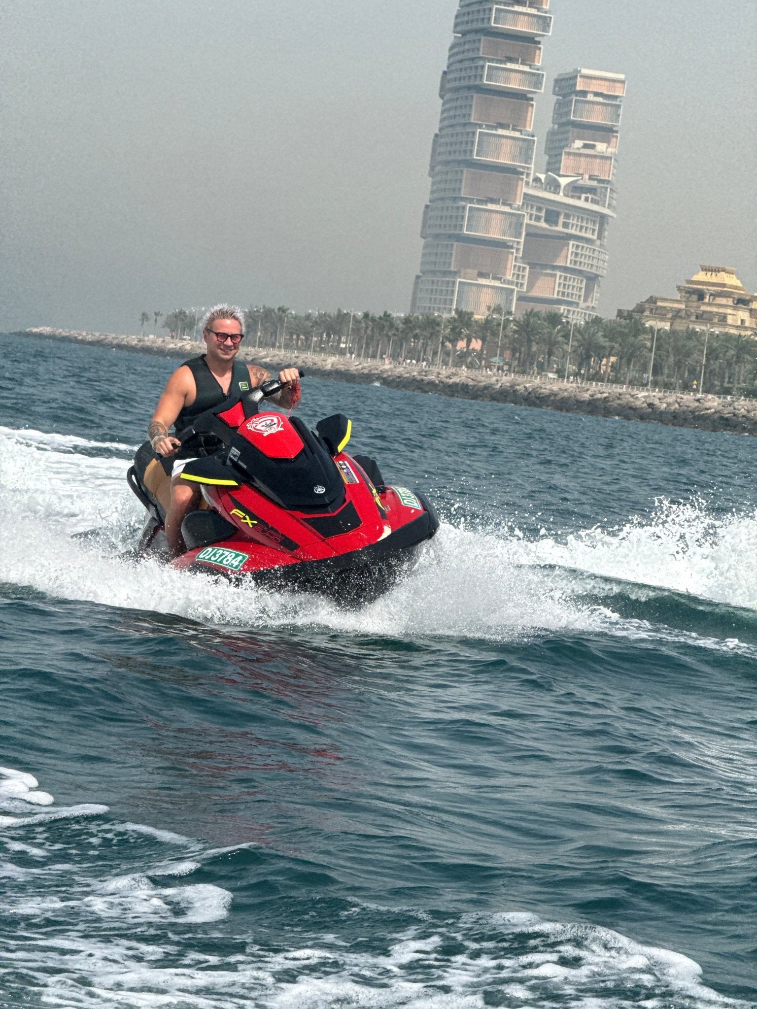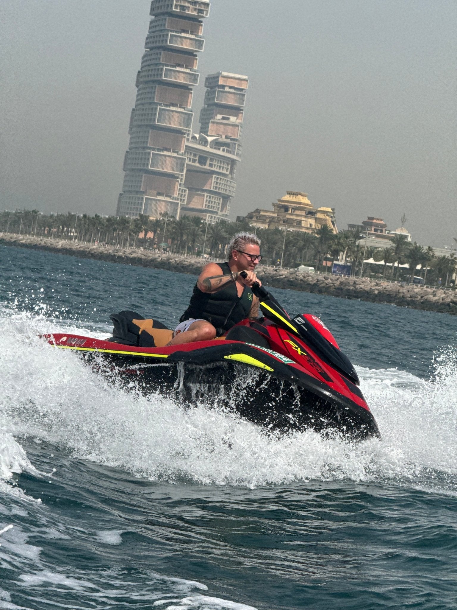 Dubai'de heyecan verici bir Jet Ski yolculuğu mu arıyorsunuz? Unutulmaz bir macera için JBR'de bize katılın! İster profesyonel olun, ister ilk kez deneyiyor olun, eğitmenlerimiz bunu eğlenceli hale getiriyor. Dubai'nin en gözde noktalarının (Dubai Eye, Atlantis the Palm) nefes kesen manzarasını izleyin ve heyecanın tadını çıkarın!
