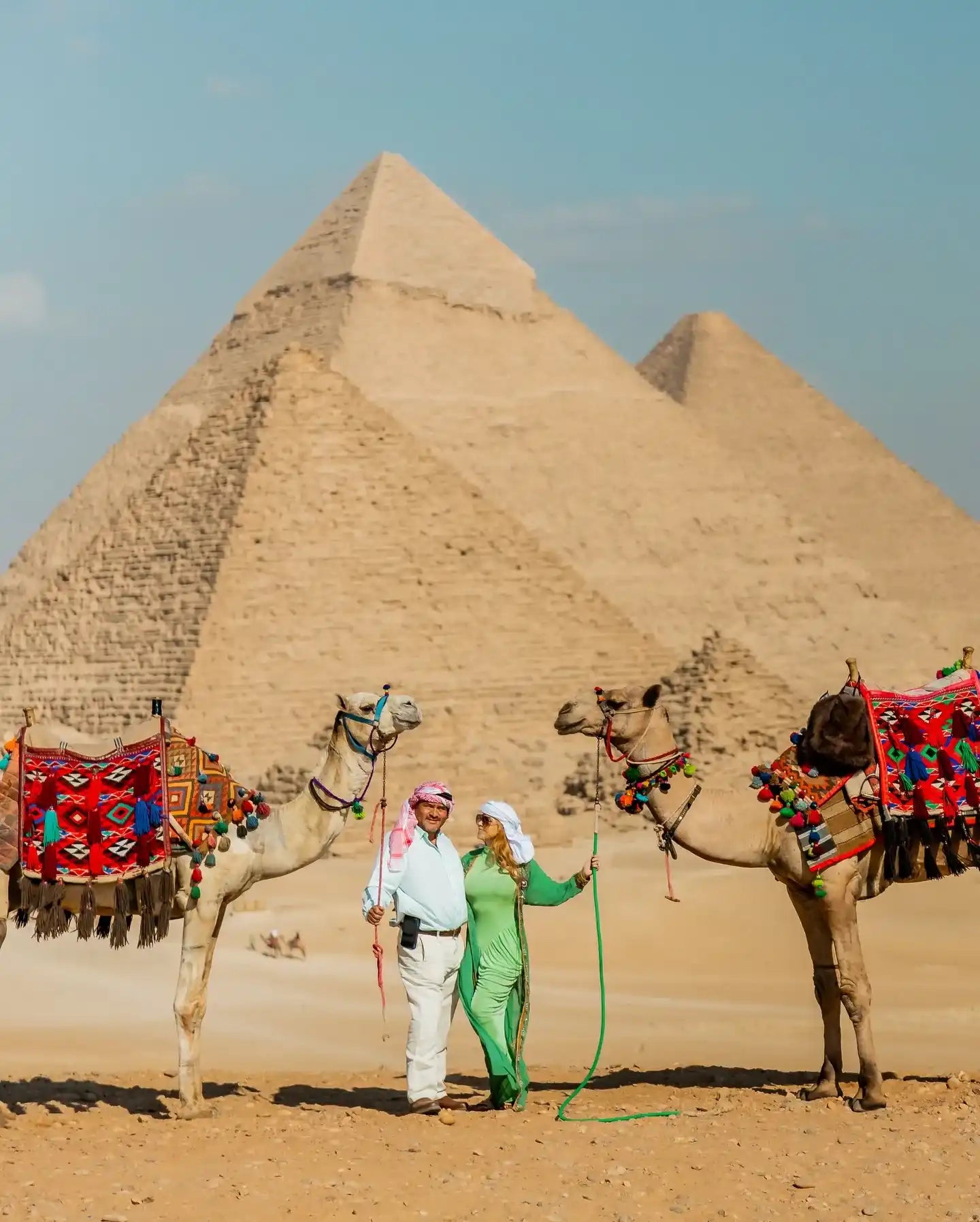 通过独特的骑骆驼或马车体验,探索吉萨高原历久弥新的奇迹。沿着沙漠小径前行,欣赏吉萨大金字塔、神秘的狮身人面像以及其他古老遗迹;在导游的讲解中,聆听埃及辉煌历史的精彩故事。