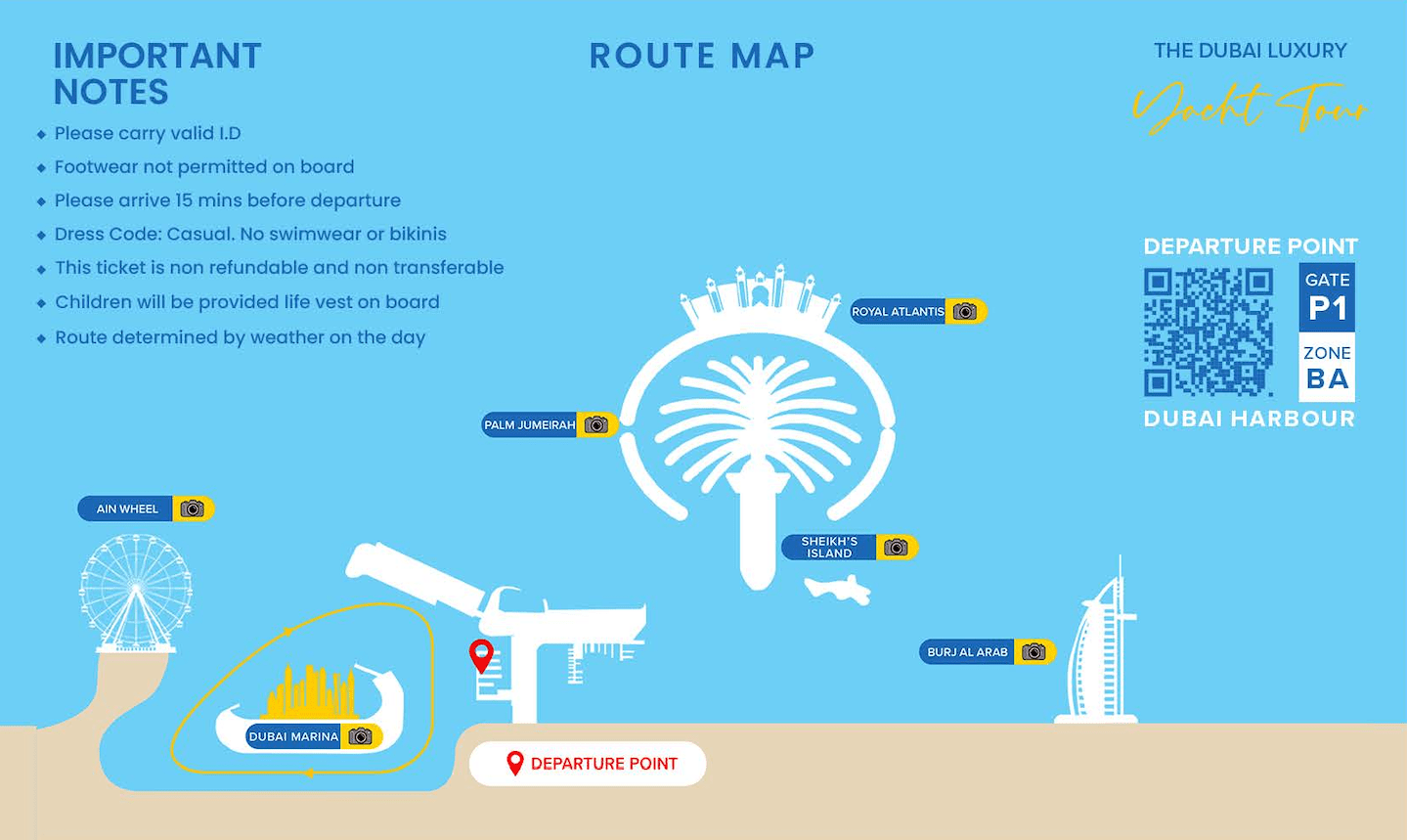 - 乘客需要在出发前 15 分钟抵达迪拜港 P1-BA 登机口
