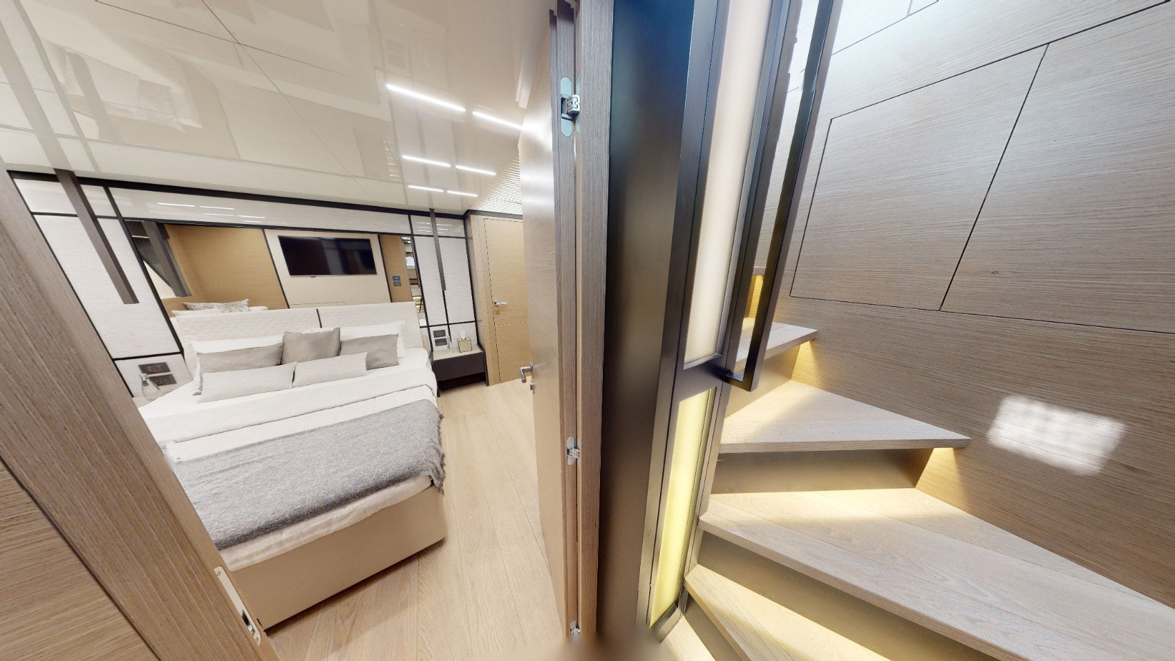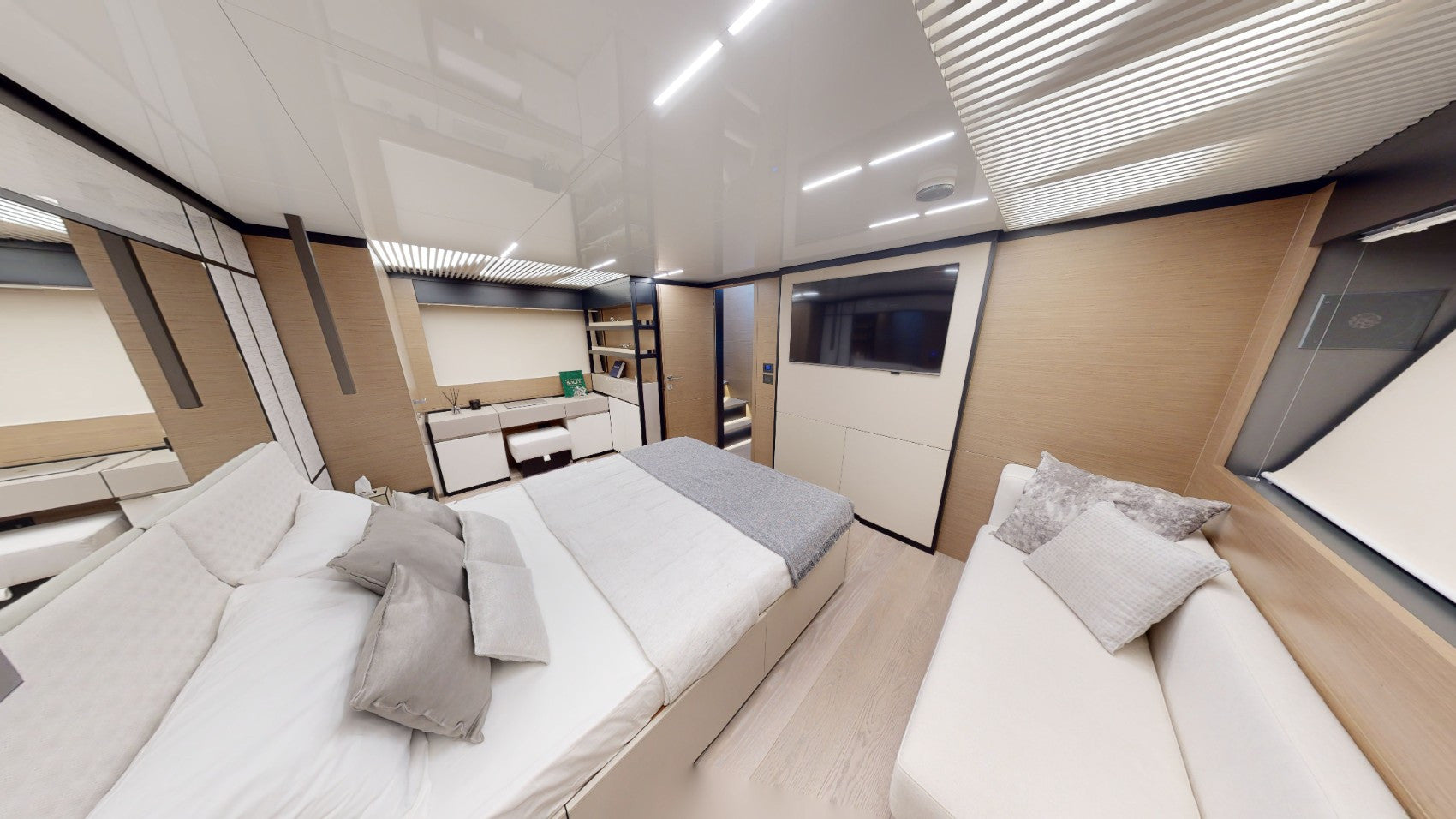 内部:4 间客舱配有空调、高速 Wi-Fi 和卫星通信系统,为客人提供舒适感、宽敞的沙龙和设备齐全的厨房。
