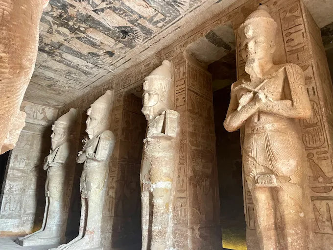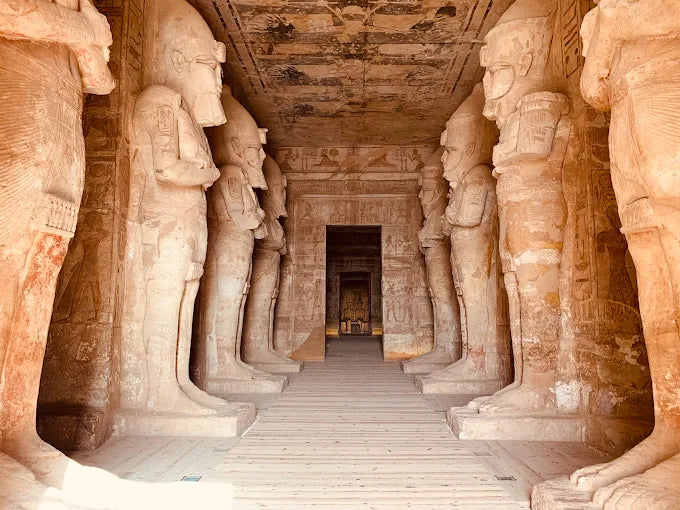 第2天:阿布辛贝神庙群从阿斯旺的酒店出发,踏上前往令人叹为观止的阿布辛贝神庙群的旅程,这是埃及最杰出的考古瑰宝之一。当你接近时,会被这些巨大的岩石雕刻神庙的规模所震撼,这些神庙由法老拉美西斯二世在公元前13世纪建造,以展示他的权力和对神灵的虔诚。 欣赏守卫大庙入口的四座拉美西斯二世的巨大雕像,每座高达20米。走进去探索装饰精美的大厅,那里详细的雕刻和象形文字描绘了法老的军事胜利,包括著名的卡迭石战役。 接下来,参观规模较小但同样迷人的哈索尔神庙,献给拉美西斯二世心爱的妻子奈菲尔塔利王后。注意到奈菲尔塔利被独特地描绘成与法老同等规模——这是古埃及艺术中罕见的致敬。 当你漫步在这些被联合国教科文组织列入名录的神庙中时,了解它们在20世纪60年代令人难以置信的迁移,这是一项工程壮举,拯救了它们免于被纳赛尔湖上涨的水淹没。9小时