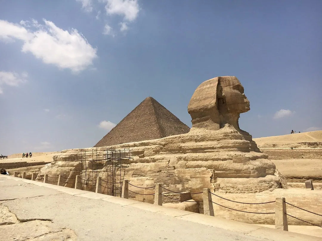 驱车前往古代世界七大奇迹之一的胡夫金字塔。探索金字塔群,包括山谷神庙和胡夫金字塔的全景。继续前往卡夫拉金字塔群,参观狮身人面像神庙、通道和祭祀神庙。参观门卡乌拉金字塔群,了解其独特的建筑和历史。欣赏标志性的吉萨狮身人面像,具有狮子的身体和人类的头部。